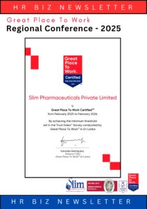 Representing Slim Pharmaceuticals (Pvt) Ltd, Mrs. Nelum Ambawela attended the Great Place to Work Regional Conference 2025, themed “Culture Capital: Building Trust, Empowering People, Driving Performance.”