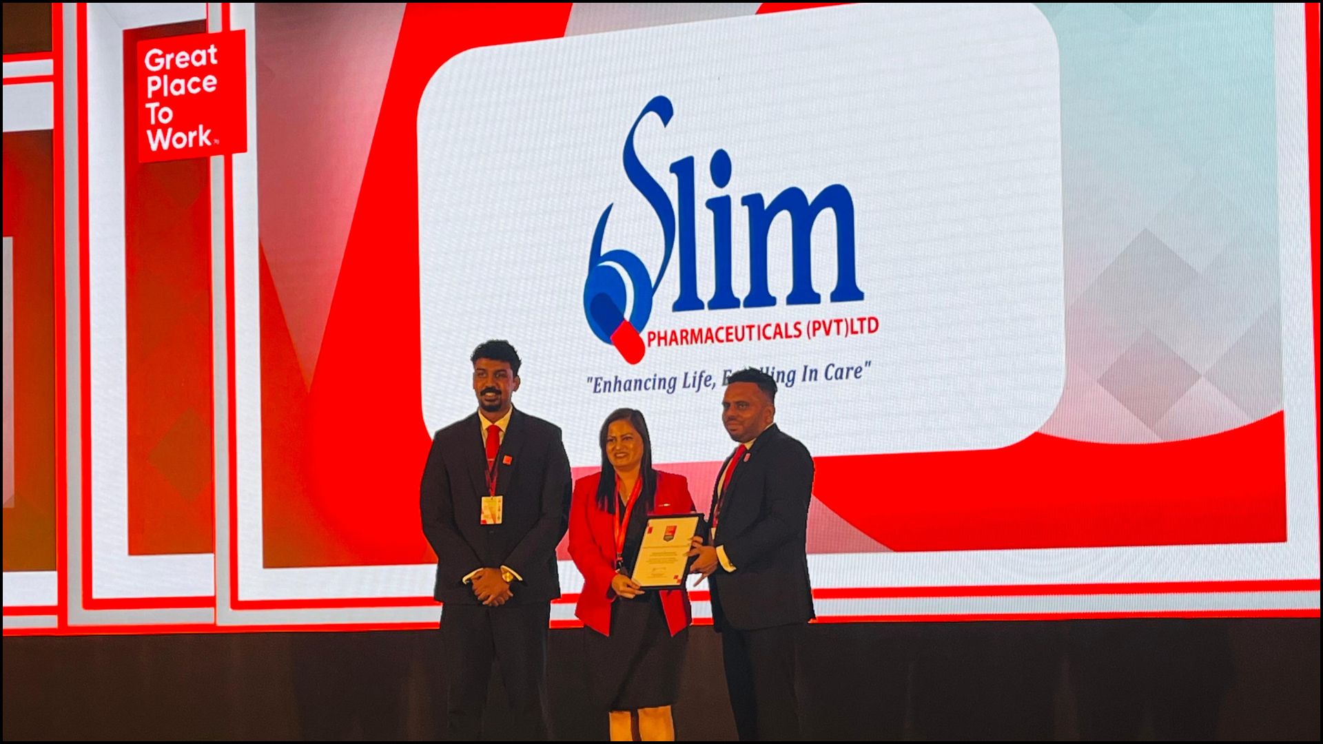 During this event, Slim Pharmaceuticals was officially awarded for being recognized as a Great Place to Work, and Mrs. Ambawela was honored to accept this recognition on behalf of the company.